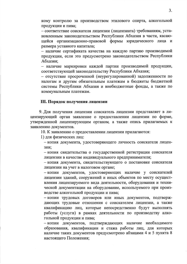 Постановление Кабинета Министров Республики Абхазия от 19.04.2016 № 47 "Об утверждении "Положения о порядке лицензирования деятельности по производству этилового спирта, алкогольной продукции и пива"