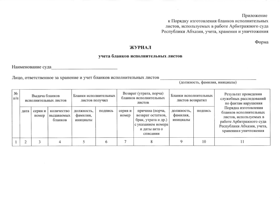 Постановление Кабинета Министров Республики Абхазия от 19.04.2016 № 49 "Об утверждении Формы бланка исполнительного листа, используемого в работе Арбитражного суда Республики Абхазия, порядка изготовления, учета, хранения и уничтожения бланков"