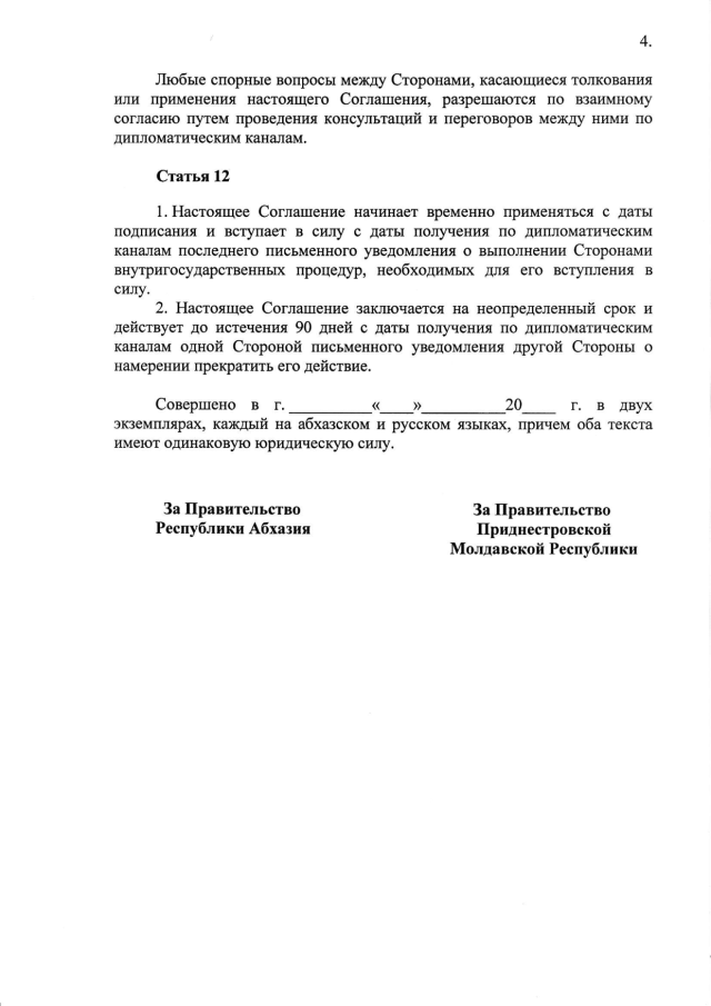 Постановление Кабинета Министров Республики Абхазия от 06.05.2016 № 62 "О проекте Соглашения меяеду Правительством Республики Абхазия и Правительством Приднестровской Молдавской Республики о взаимных безвизовых поездках граждан Республики Абхазия и граждан Приднестровской Молдавской Республики"