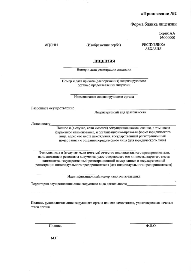 Постановление Кабинета Министров Республики Абхазия от 16.06.2016 № 101 "О внесении изменения в Постановление Кабинета Министров Республики Абхазия от 10.12.2015 г. № 174 "Об утверждении "Перечня органов исполнительной власти, осуществляющих лицензирование конкретных видов деятельности" и "Формы бланка лицензии"
