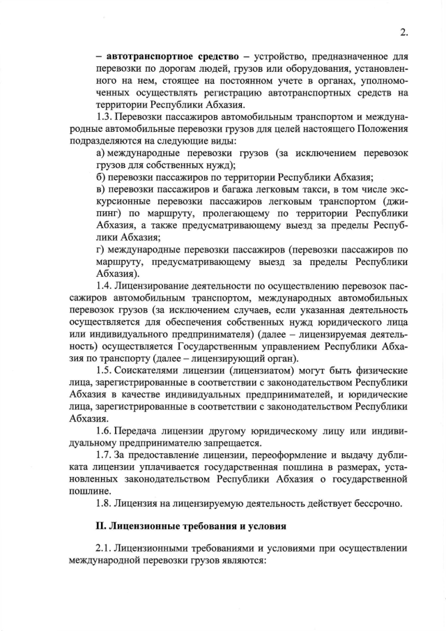 Постановление Кабинета Министров Республики Абхазия от 16.06.2016 № 104 "Об утверждении "Положения о лицензировании деятельности по перевозкам пассажиров автомобильным транспортом, международным автомобильным перевозкам грузов (за исключением случаев, если указанная деятельность осуществляется для обеспечения собственных нужд юридического лица или индивидуального предпринимателя)"
