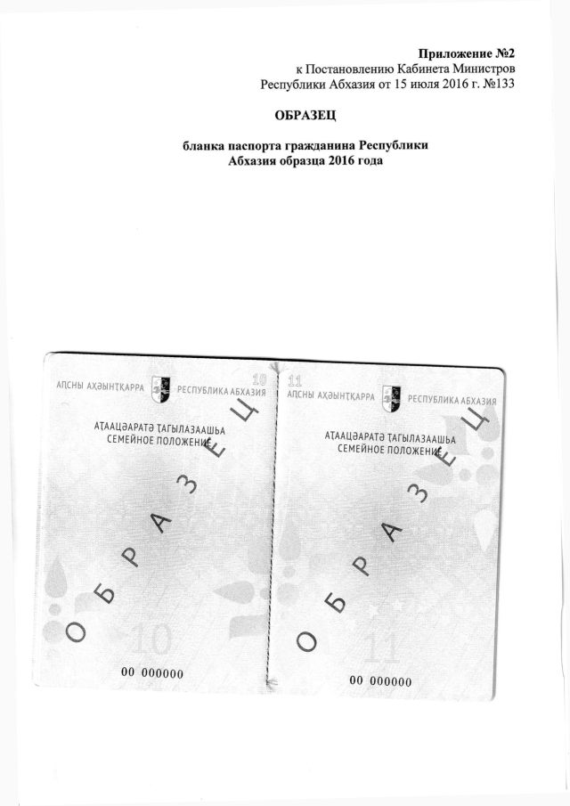 Постановление Кабинета Министров Республики Абхазия от 15.07.2016 № 133 "Об утверждении Положения о паспорте гражданина Республики Абхазия образца 2016 года, образца бланка и его описания"