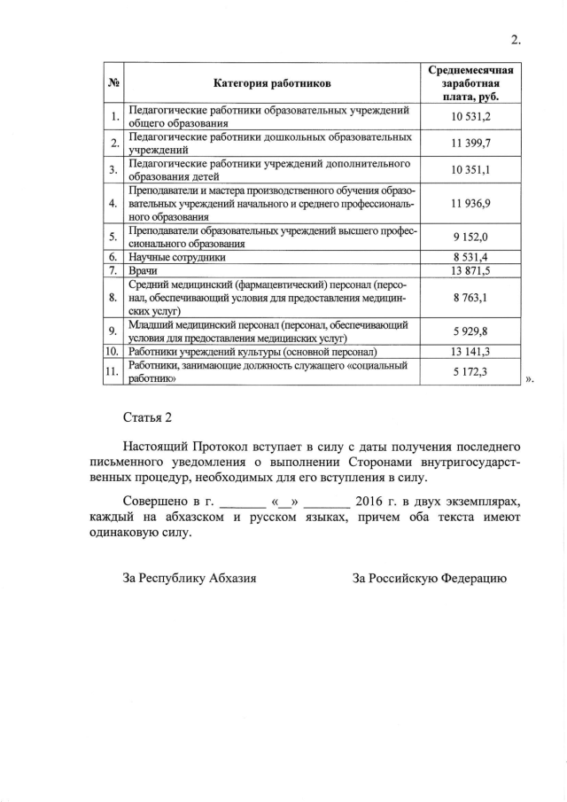 Постановление Кабинета Министров Республики Абхазия от 25.07.2016 № 135 "О проекте Протокола о внесении изменений в Соглашение меяеду Республикой Абхазия и Российской Федерацией о порядке и условиях софинансирования за счет средств Российской Федерации повышения заработной платы основных категорий работников государственных учреждений Республики Абхазия в сфере здравоохранения, образования, науки, культуры, спорта и социального обслуживания граяедан от 14 апреля 2015 года"