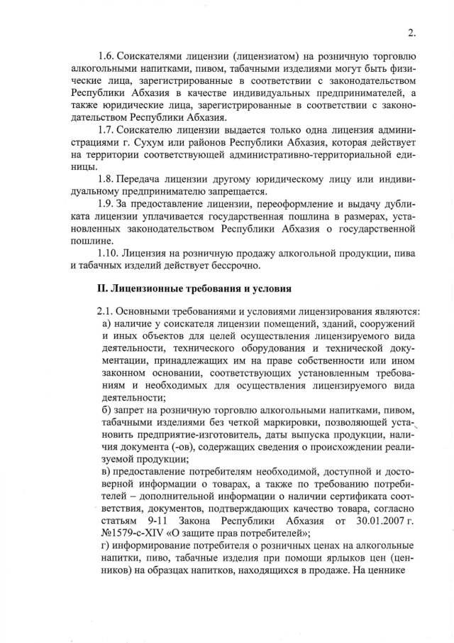 Постановление Кабинета Министров Республики Абхазия от 15.09.2016 № 160 "Об утверждении "Положения о порядке лицензирования деятельности по розничной торговле алкогольными напитками, пивом, табачными изделиями"