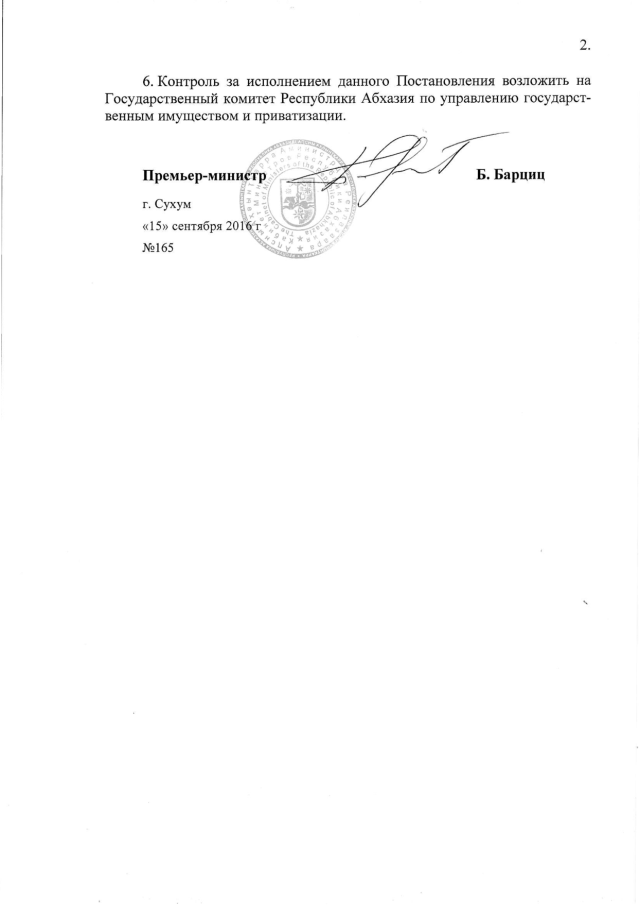 Постановление Кабинета Министров Республики Абхазия от 15.09.2016 № 165 "О передаче части жилого городка Очамчырского морского порта в собственность Администрации Очамчырского района"
