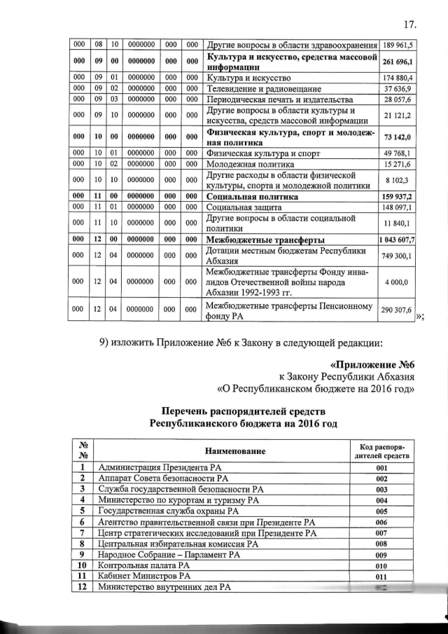 Постановление Кабинета Министров Республики Абхазия от 14.10.2016 № 175 "О проекте Закона Республики Абхазия "О внесении изменений в Закон Республики Абхазия "О Республиканском бюджете на 2016 год"