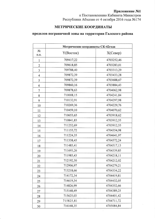 Постановление Кабинета Министров Республики Абхазия от 04.10.2016 № 174 "О пределах пограничной зоны на территории Галского района"