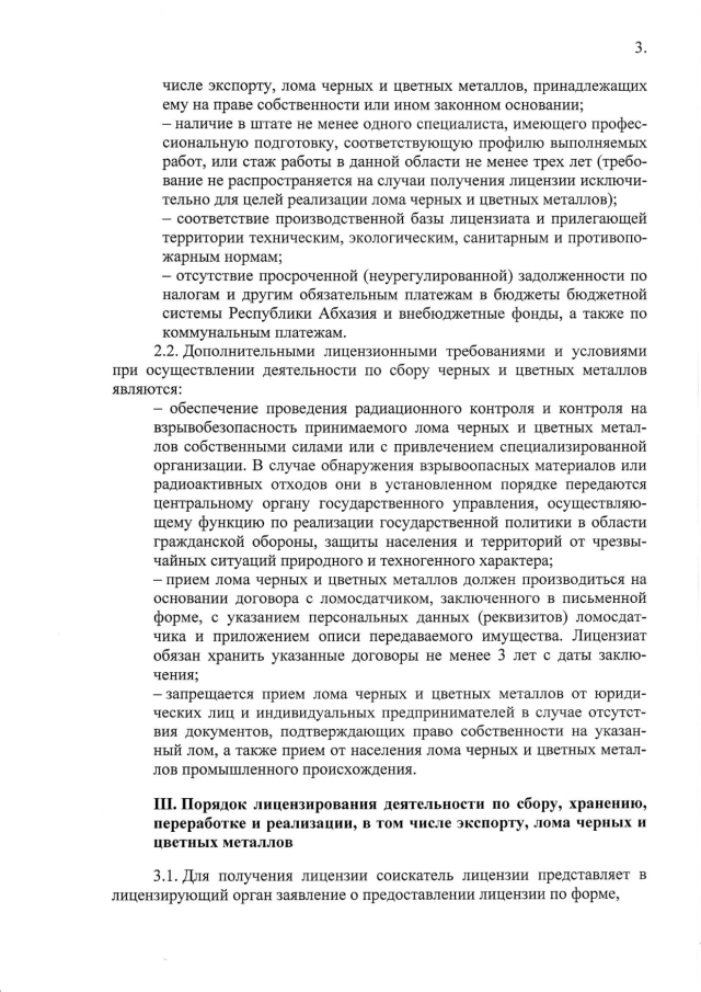 Постановление Кабинета Министров Республики Абхазия от 21.10.2016 № 178 "Об утверждении "Положения о порядке лицензирования деятельности по сбору, хранению, переработке и реализации, в том числе экспорту, лома черных и цветных металлов"