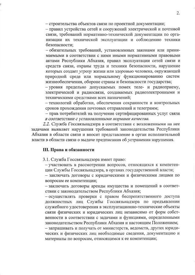 Постановление Кабинета Министров Республики Абхазия от 21.10.2016 № 180 "Об утверждении "Положения о Службе государственного надзора Республики Абхазия за деятельностью в области связи"