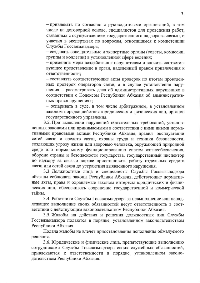 Постановление Кабинета Министров Республики Абхазия от 21.10.2016 № 180 "Об утверждении "Положения о Службе государственного надзора Республики Абхазия за деятельностью в области связи"