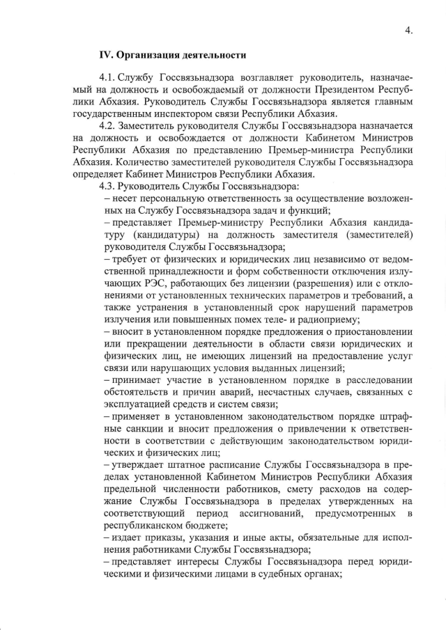 Постановление Кабинета Министров Республики Абхазия от 21.10.2016 № 180 "Об утверждении "Положения о Службе государственного надзора Республики Абхазия за деятельностью в области связи"