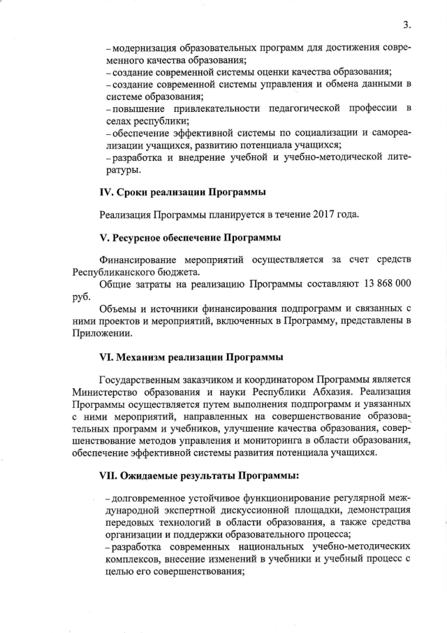 Постановление Кабинета Министров Республики Абхазия от 08.02.2017 № 1 "Об утверждении целевой программы "Развитие образования-2017"