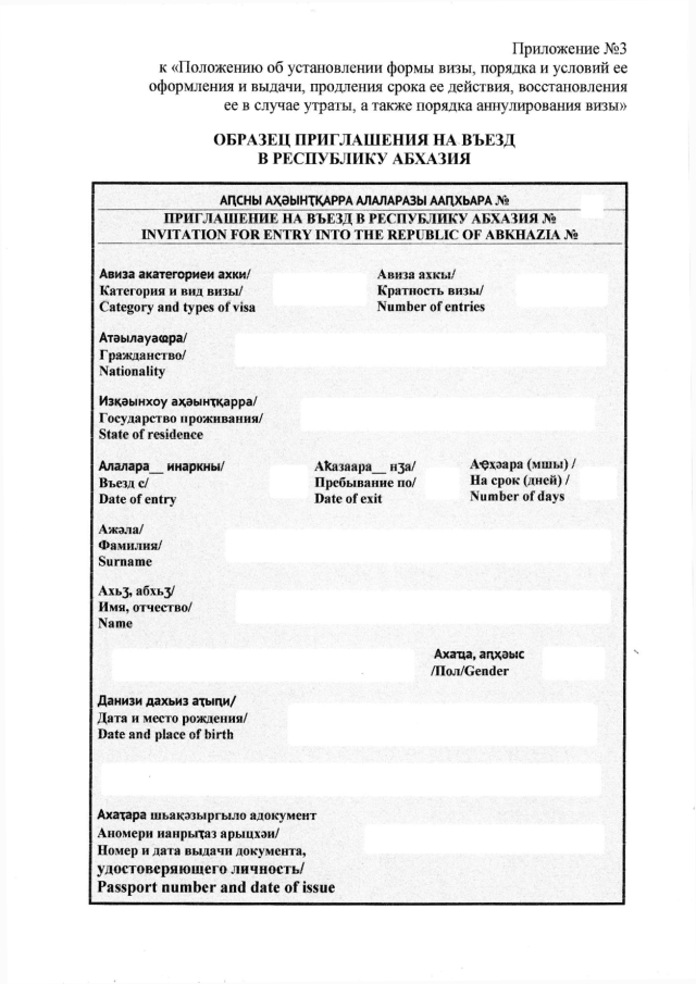 Постановление Кабинета Министров Республики Абхазия от 08.02.2017 № 3 "Об утверждении "Положения об установлении формы визы, порядка и условий ее оформления и выдачи, продления срока ее действия, восстановления ее в случае утраты, а также порядка аннулирования визы"