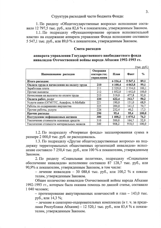 Постановление Кабинета Министров Республики Абхазия от 06.03.2017 № 20 "Об исполнении бюджета Государственного внебюджетного фонда инвалидов Отечественной войны народа Абхазии 1992-1993 гг. за 2016 год"