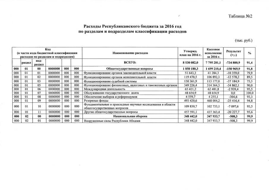 Постановление Кабинета Министров Республики Абхазия от 06.03.2017 № 19 "Об исполнении Республиканского бюджета за 2016 год"