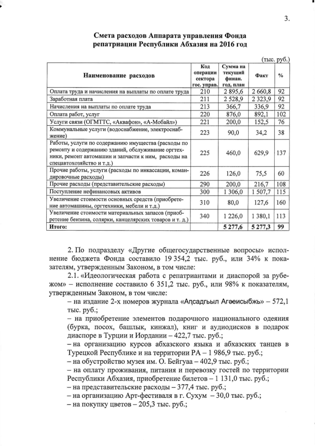 Постановление Кабинета Министров Республики Абхазия от 06.03.2017 № 22 "Об исполнении бюджета Фонда репатриации Республики Абхазия за 2016 год"