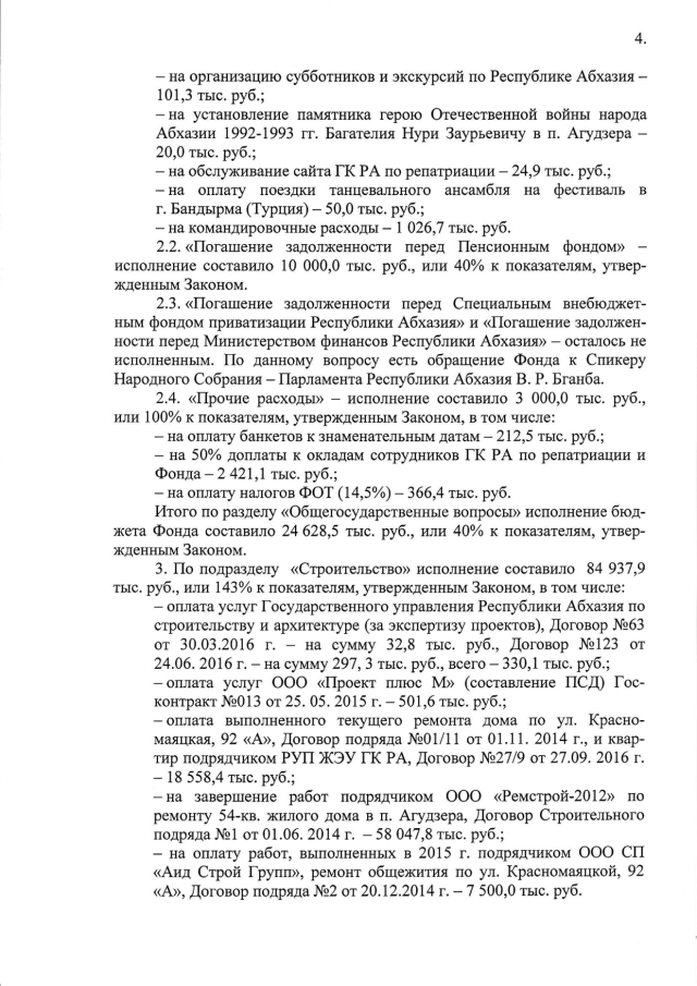 Постановление Кабинета Министров Республики Абхазия от 06.03.2017 № 22 "Об исполнении бюджета Фонда репатриации Республики Абхазия за 2016 год"