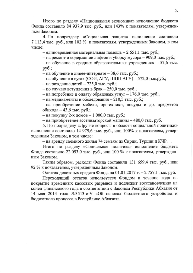 Постановление Кабинета Министров Республики Абхазия от 06.03.2017 № 22 "Об исполнении бюджета Фонда репатриации Республики Абхазия за 2016 год"