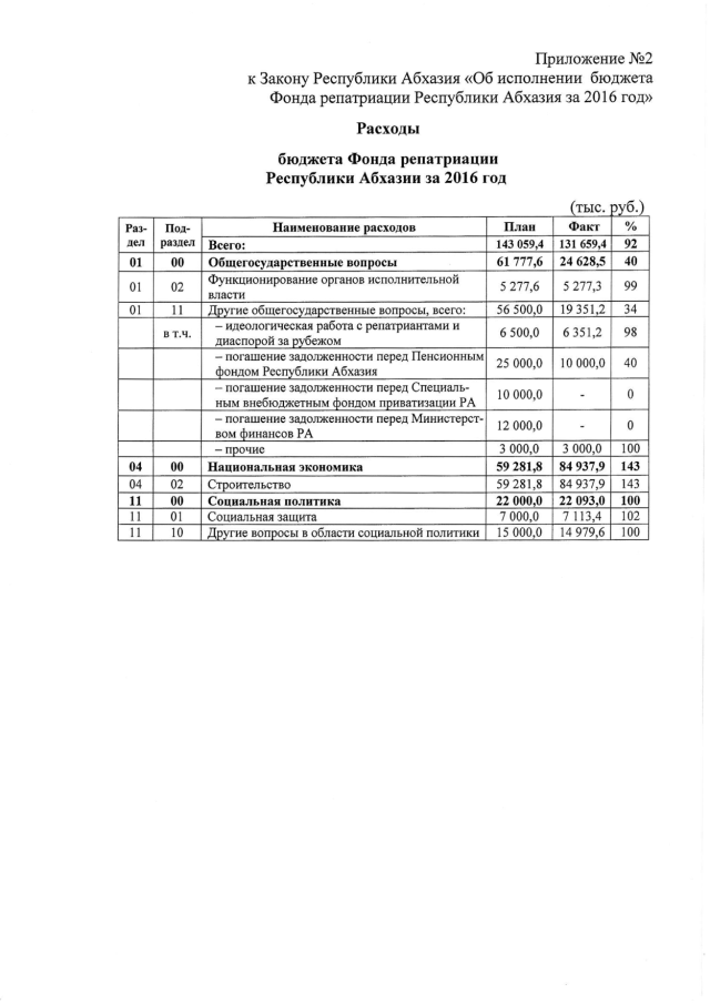 Постановление Кабинета Министров Республики Абхазия от 06.03.2017 № 22 "Об исполнении бюджета Фонда репатриации Республики Абхазия за 2016 год"