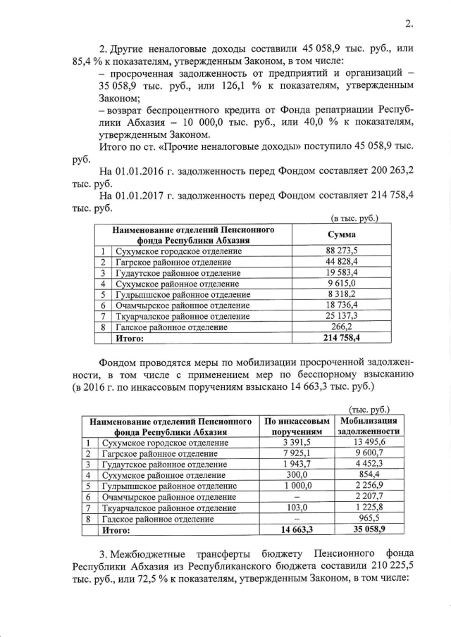 Постановление Кабинета Министров Республики Абхазия от 06.03.2017 № 24 "Об исполнении бюджета Пенсионного фонда Республики Абхазия за 2016 год"