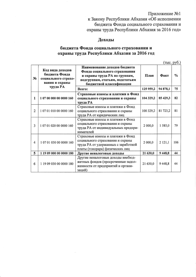Постановление Кабинета Министров Республики Абхазия от 06.03.2017 № 25 "Об исполнении бюджета Фонда социального страхования и охраны труда Республики Абхазия за 2016 год"