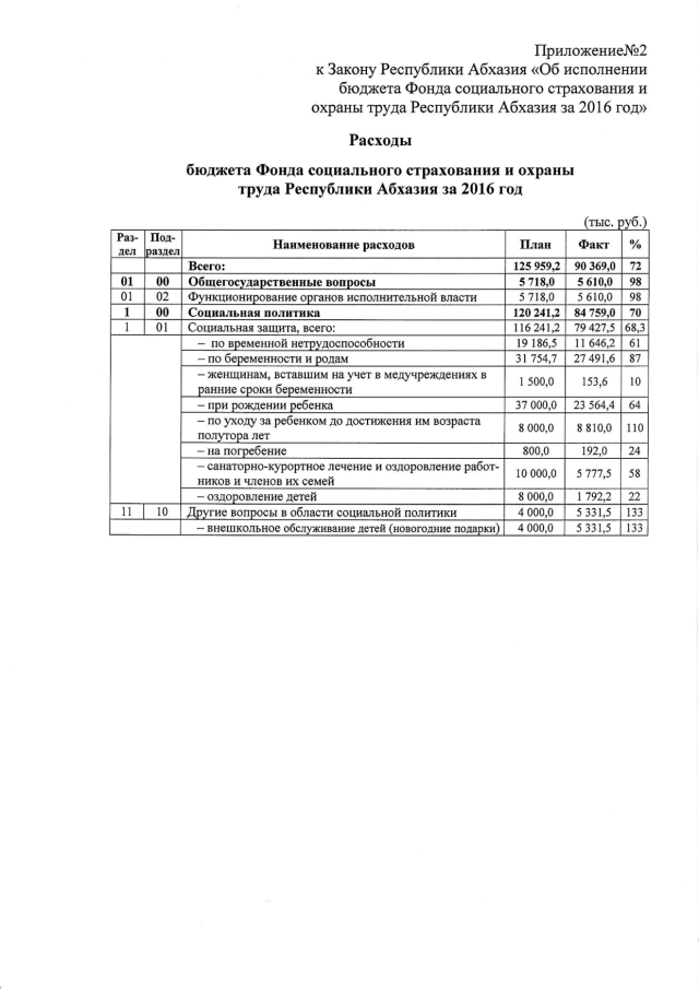 Постановление Кабинета Министров Республики Абхазия от 06.03.2017 № 25 "Об исполнении бюджета Фонда социального страхования и охраны труда Республики Абхазия за 2016 год"