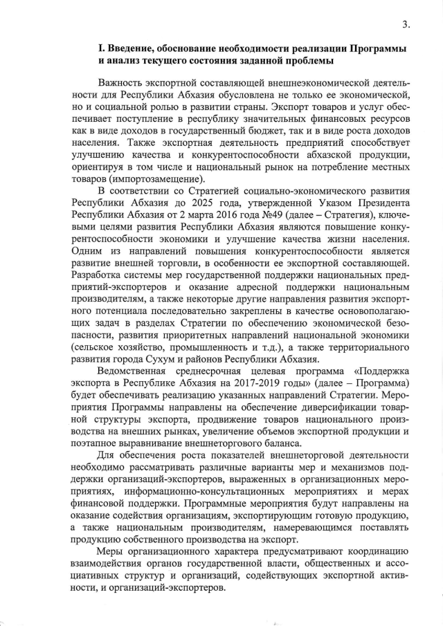 Постановление Кабинета Министров Республики Абхазия от 06.03.2017 № 27 "Об утверждении ведомственной среднесрочной целевой программы "Поддержка экспорта в Республике Абхазия на 2017-2019 годы"