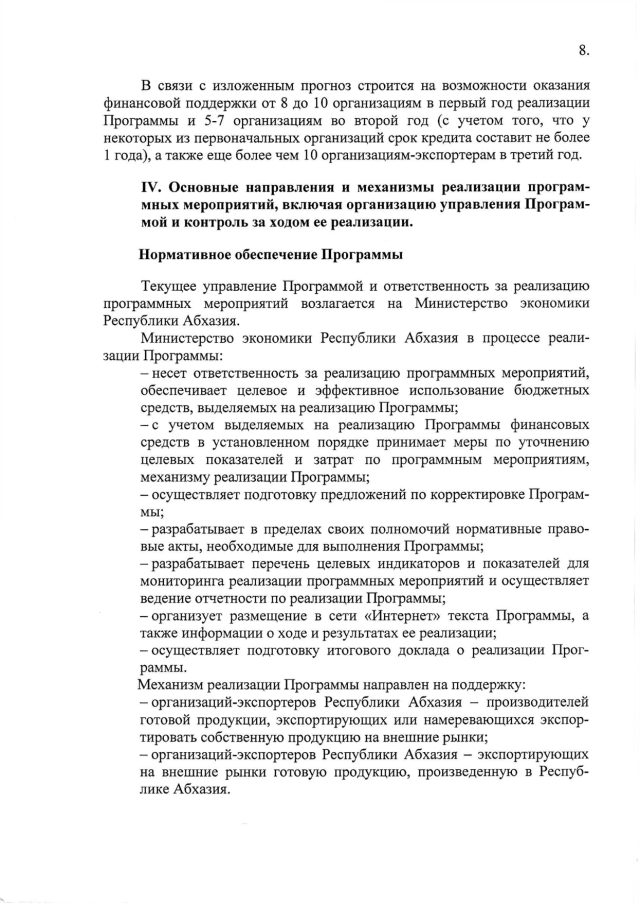 Постановление Кабинета Министров Республики Абхазия от 06.03.2017 № 27 "Об утверждении ведомственной среднесрочной целевой программы "Поддержка экспорта в Республике Абхазия на 2017-2019 годы"