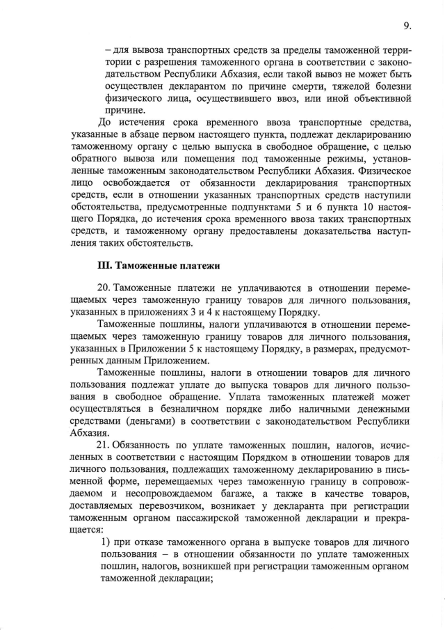 Постановление Кабинета Министров Республики Абхазия от 30.03.2017 № 32 "Об утверждении "Временного порядка перемещения физическими лицами через таможенную границу Республики Абхазия товаров не для коммерческих целей"