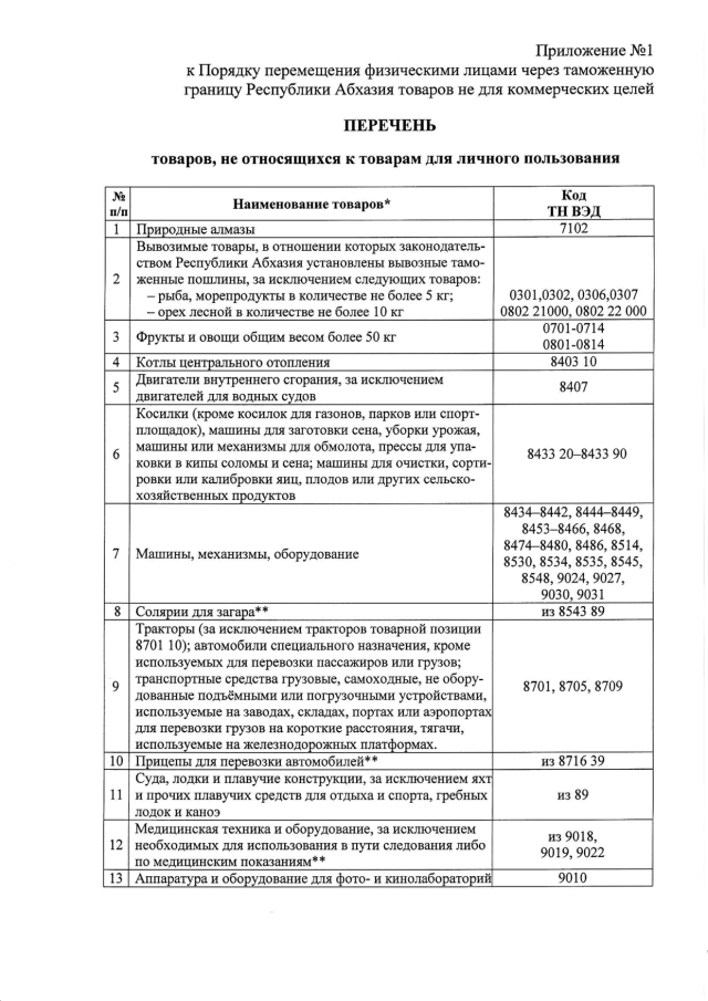 Постановление Кабинета Министров Республики Абхазия от 30.03.2017 № 32 "Об утверждении "Временного порядка перемещения физическими лицами через таможенную границу Республики Абхазия товаров не для коммерческих целей"