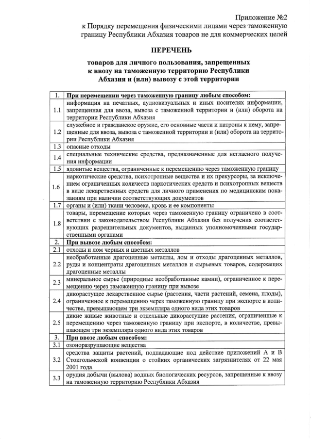 Постановление Кабинета Министров Республики Абхазия от 30.03.2017 № 32 "Об утверждении "Временного порядка перемещения физическими лицами через таможенную границу Республики Абхазия товаров не для коммерческих целей"