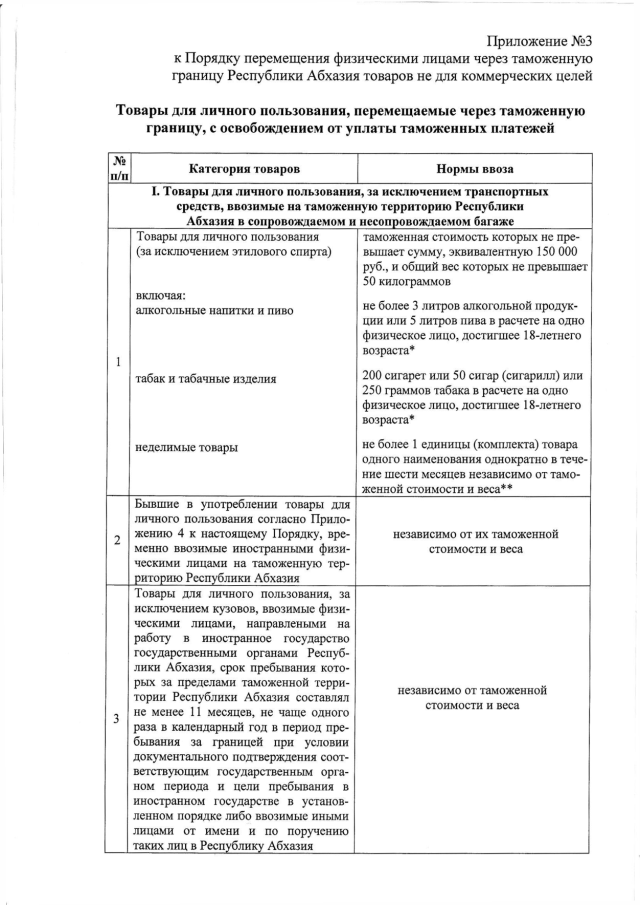 Постановление Кабинета Министров Республики Абхазия от 30.03.2017 № 32 "Об утверждении "Временного порядка перемещения физическими лицами через таможенную границу Республики Абхазия товаров не для коммерческих целей"