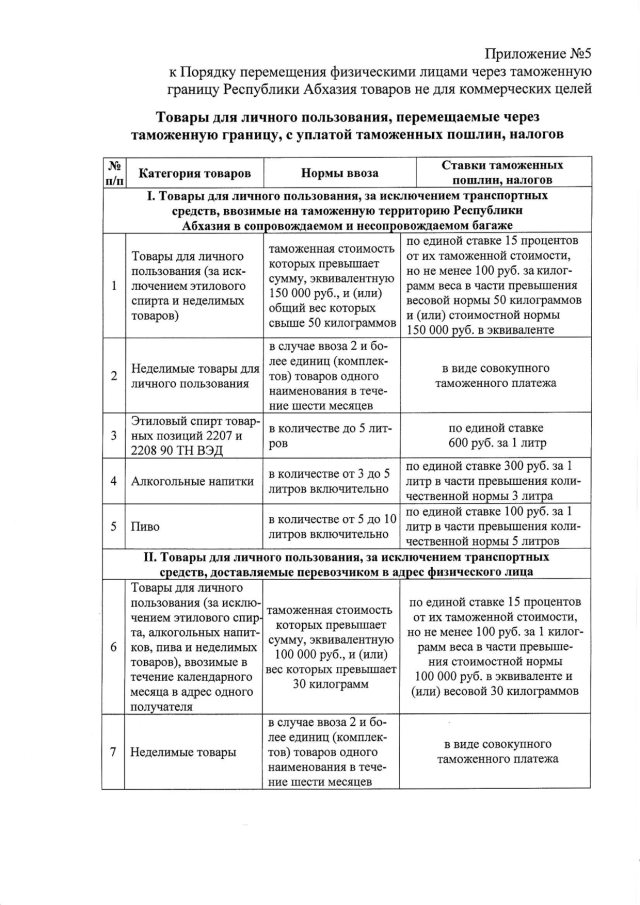 Постановление Кабинета Министров Республики Абхазия от 30.03.2017 № 32 "Об утверждении "Временного порядка перемещения физическими лицами через таможенную границу Республики Абхазия товаров не для коммерческих целей"