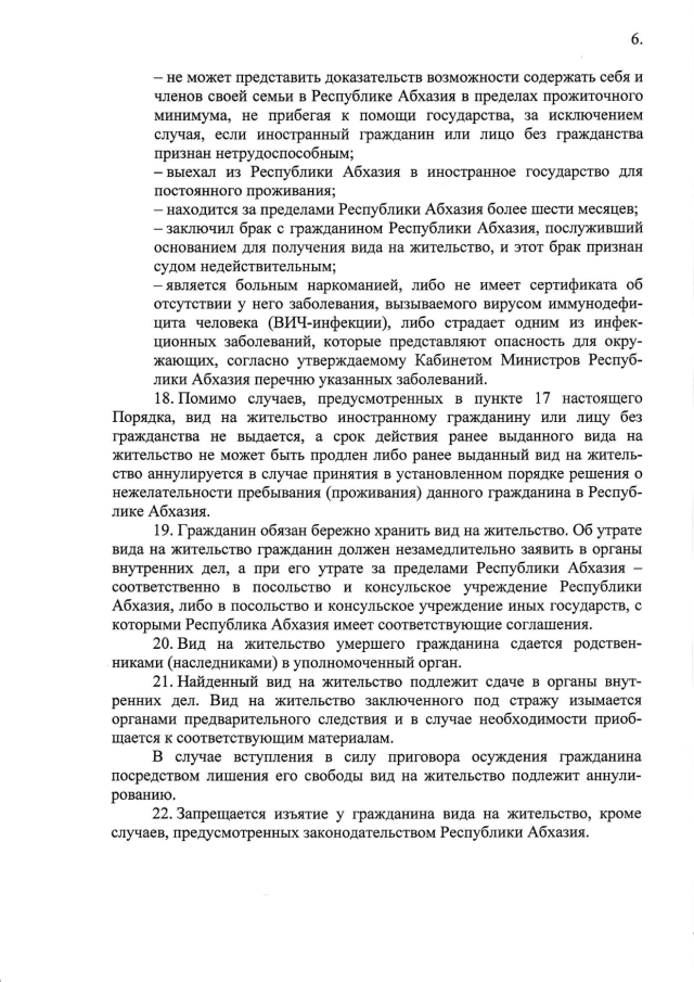 Постановление Кабинета Министров Республики Абхазия от 30.03.2017 № 33 "Об утверждении формы бланка документальной книжки вида на жительство Республики Абхазия и его описания, порядка выдачи или продления срока действия вида на жительство Республики Абхазия и формы заявления о выдаче или продлении срока действия вида на жительство Республики Абхазия"