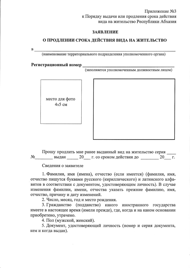Постановление Кабинета Министров Республики Абхазия от 30.03.2017 № 33 "Об утверждении формы бланка документальной книжки вида на жительство Республики Абхазия и его описания, порядка выдачи или продления срока действия вида на жительство Республики Абхазия и формы заявления о выдаче или продлении срока действия вида на жительство Республики Абхазия"