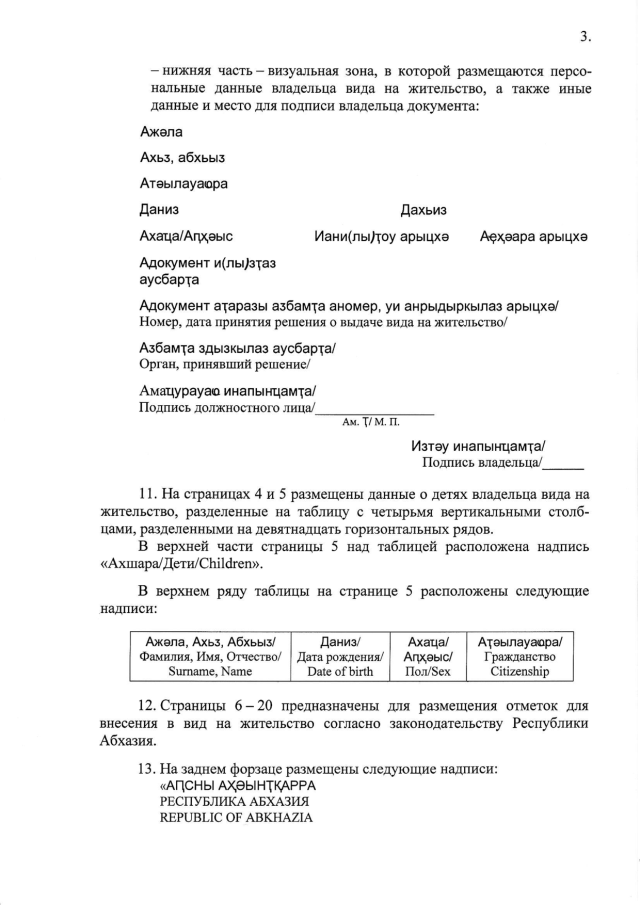 Постановление Кабинета Министров Республики Абхазия от 30.03.2017 № 33 "Об утверждении формы бланка документальной книжки вида на жительство Республики Абхазия и его описания, порядка выдачи или продления срока действия вида на жительство Республики Абхазия и формы заявления о выдаче или продлении срока действия вида на жительство Республики Абхазия"