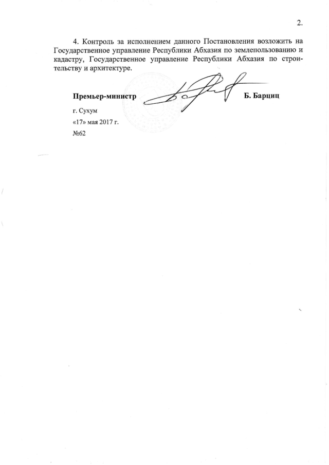 Постановление Кабинета Министров Республики Абхазия от 17.05.2017 № 62 "О переводе земельного участка площадью 1,40 га в с. Дранда Гулрыпшского района из категории "земли сельскохозяйственного назначения" в категорию "земли рекреационного назначения" и его предоставлении ИП Адлейба А.С. для строительства курортно-оздоровительного объекта"