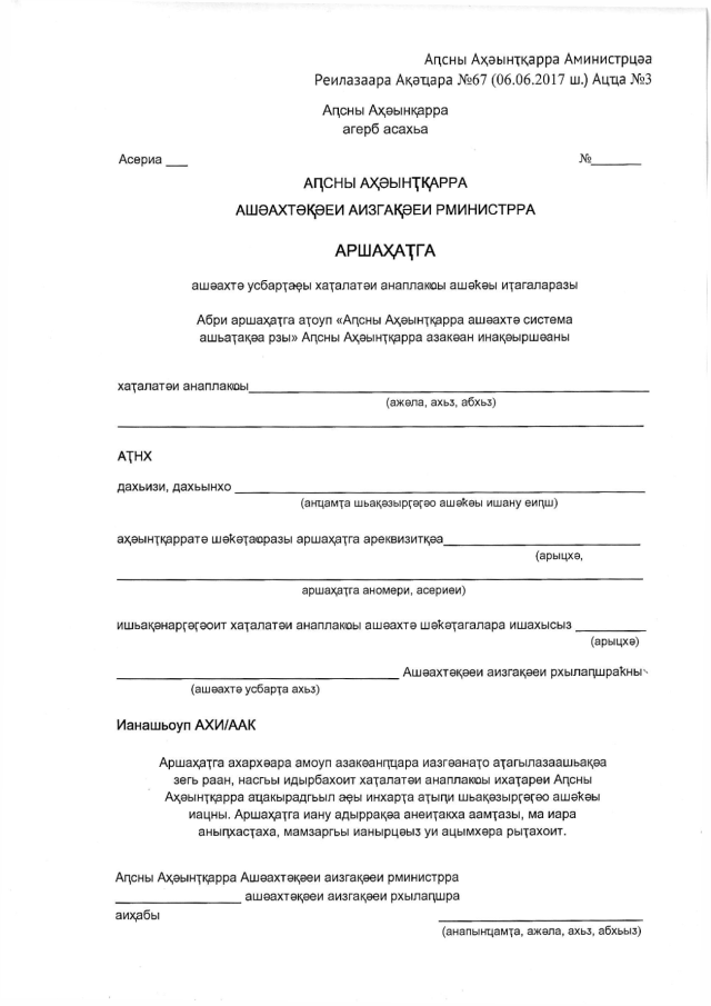 Постановление Кабинета Министров Республики Абхазия от 06.06.2017 № 67 "Об утверждении порядка постановки на налоговый учет юридических лиц и индивидуальных предпринимателей"