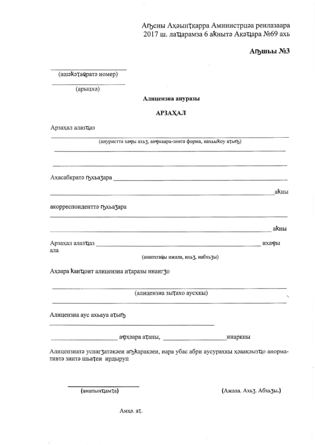 Постановление Кабинета Министров Республики Абхазия от 06.06.2017 № 69 "Об утверждении "Положения о лицензировании оценочной деятельности"