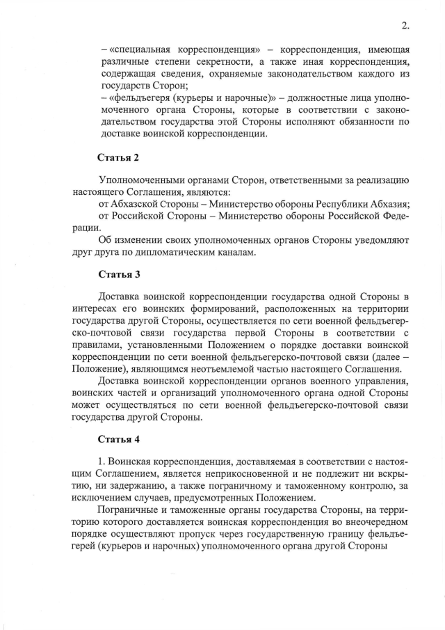 Постановление Кабинета Министров Республики Абхазия от 20.07.2017 № 104 "О заключении Соглашения между Правительством Республики Абхазия и Правительством Российской Федерации о сотрудничестве в области фельдъегерско-почтовой связи"