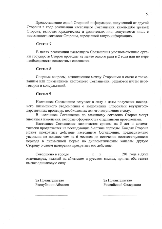 Постановление Кабинета Министров Республики Абхазия от 20.07.2017 № 104 "О заключении Соглашения между Правительством Республики Абхазия и Правительством Российской Федерации о сотрудничестве в области фельдъегерско-почтовой связи"