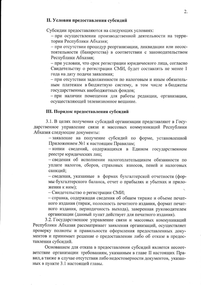 Постановление Кабинета Министров Республики Абхазия от 26.07.2017 № 108 "Об утверждении "Правил предоставления финансовой помощи (субсидий) печатным изданиям и организациям, осуществляющим телевизионное вещание, за исключением государственных учреждений, финансируемых из Государственного бюджета Республики Абхазия"