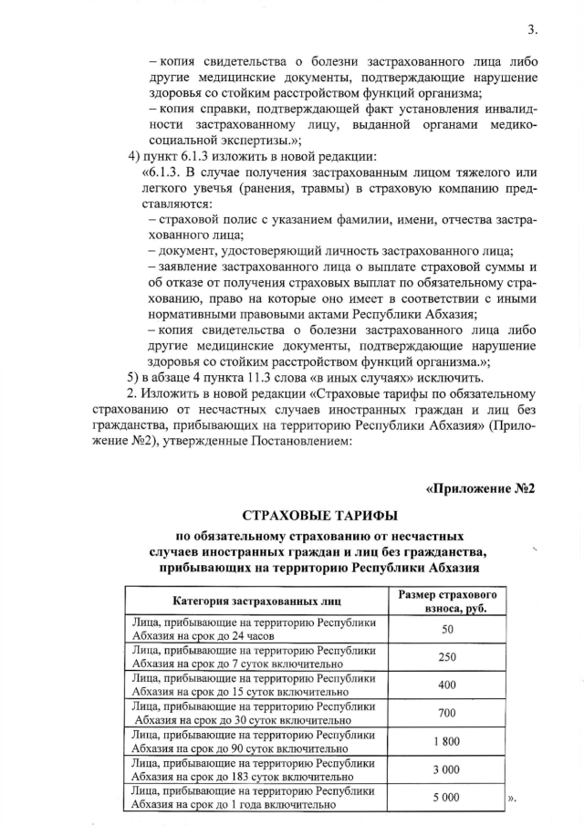 Постановление Кабинета Министров Республики Абхазия от 26.07.2017 № 109 "О внесении изменений в Постановление Кабинета Министров Республики Абхазия от 28 июля 2006 г, № 189 "Об утверждении правил, тарифов и форм документов обязательного страхования"
