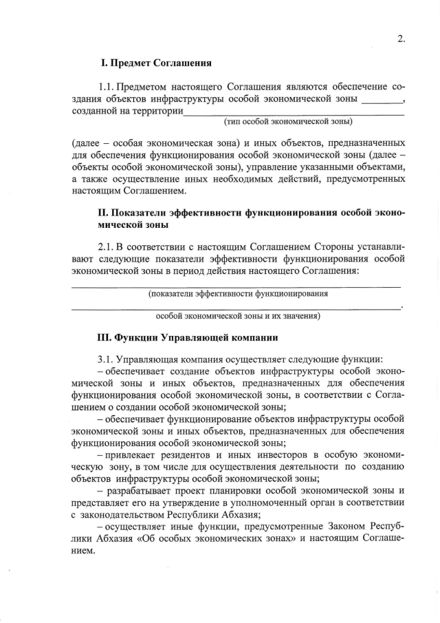 Постановление Кабинета Министров Республики Абхазия от 15.09.2017 № 131 "Об установлении "Примерной формы Соглашения, заключаемого уполномоченным органом с управляющей компанией, об управлении особой экономической зоной"