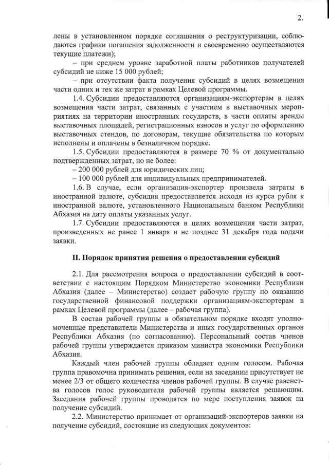 Постановление Кабинета Министров Республики Абхазия от 15.09.2017 № 133 "О порядке предоставления субсидий организациям-экспортерам в рамках целевой программы поддержки экспорта в Республике Абхазия на 2017-2019 годы"