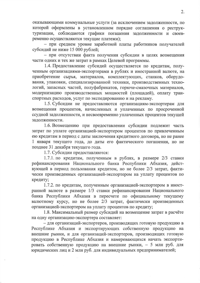 Постановление Кабинета Министров Республики Абхазия от 15.09.2017 № 133 "О порядке предоставления субсидий организациям-экспортерам в рамках целевой программы поддержки экспорта в Республике Абхазия на 2017-2019 годы"