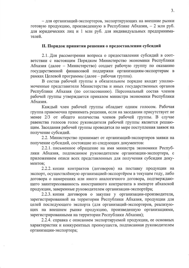 Постановление Кабинета Министров Республики Абхазия от 15.09.2017 № 133 "О порядке предоставления субсидий организациям-экспортерам в рамках целевой программы поддержки экспорта в Республике Абхазия на 2017-2019 годы"