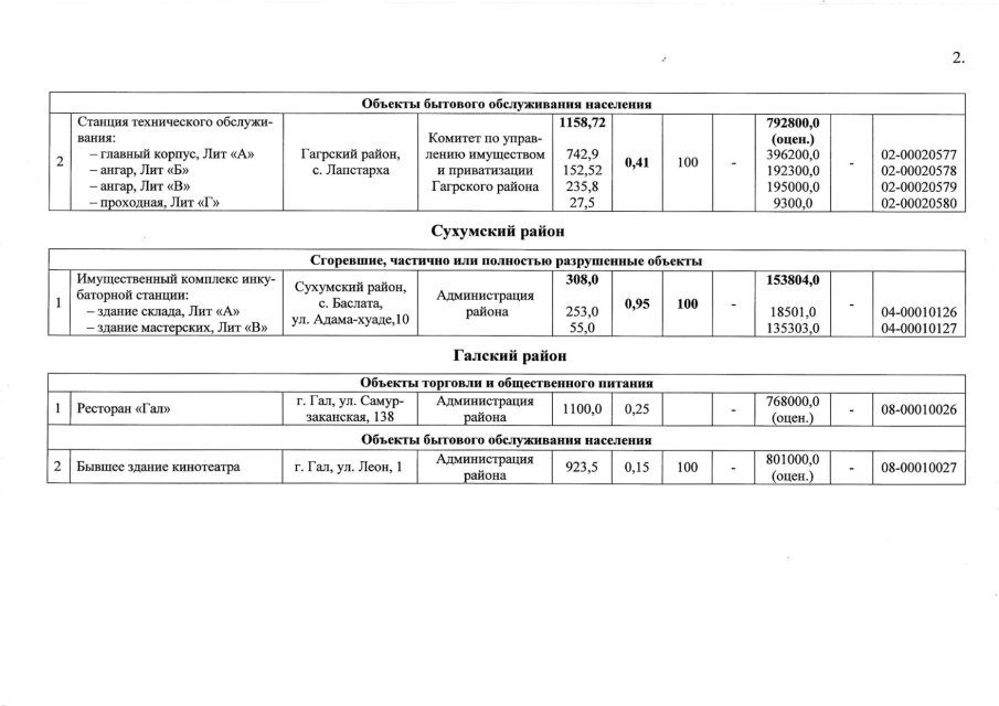 Постановление Кабинета Министров Республики Абхазия от 12.02.2016 № 20 "О дополнительном перечне объектов государственной собственности, подлежащих приватизации"