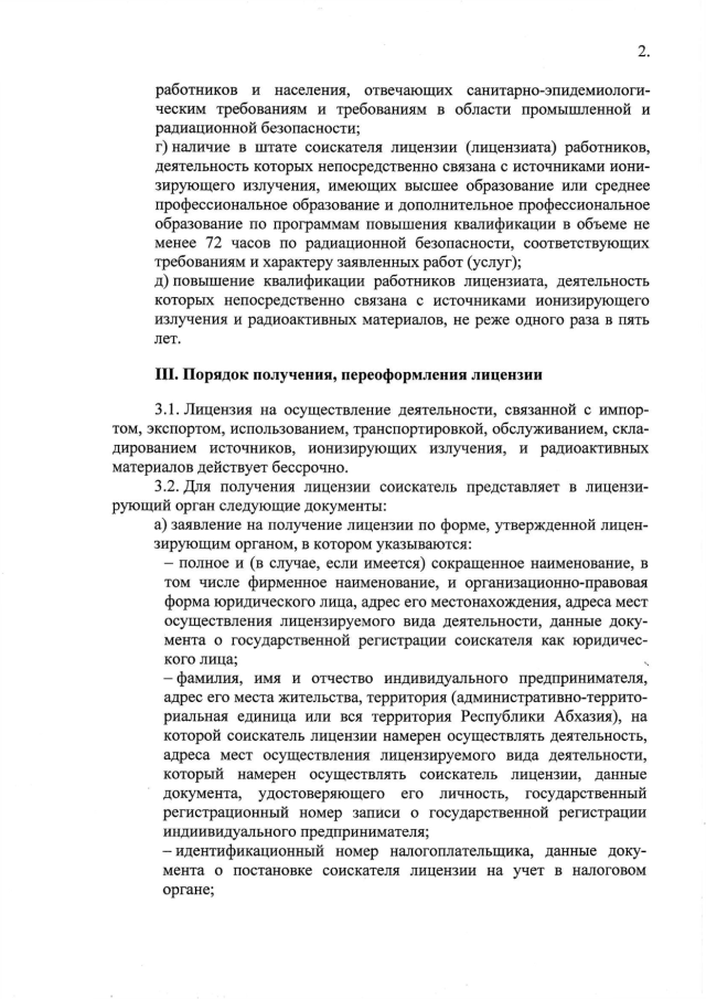Постановление Кабинета Министров Республики Абхазия от 06.05.2016 № 70 "Об утверяедении "Положения о лицензировании деятельности, связанной с импортом, экспортом, использованием, транспортировкой, обслуживанием, складированием источников, ионизирующих излучения, и радиоактивных материалов"