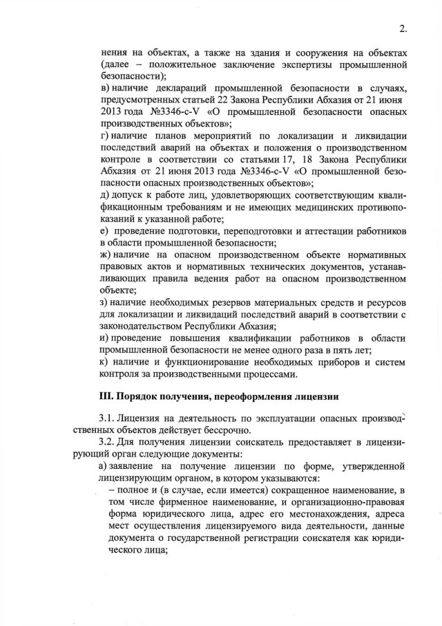 Постановление Кабинета Министров Республики Абхазия от 06.05.2016 № 71 "Об утверждении "Положения о лицензировании деятельности по эксплуатации опасных производственных объектов"